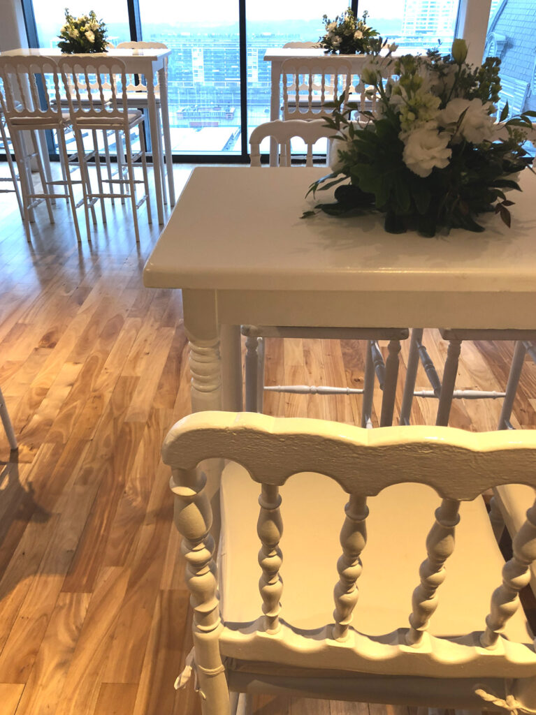 Diseñamos la espacialidad de los eventos, elegimos el mobiliario, los arreglos florales y la iluminación de cada encuentro en particular.